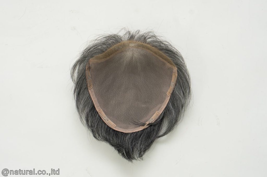 シルクネットに一本植えの軽くてつけ心地のいいウィッグです。モデルさんは撮影当時60歳です。年齢に合わせて、白髪多めにしましたが、シルバーグレーのかっこいいイケオジに仕上がっています。